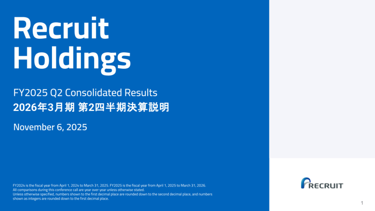 2026年3月期 第2四半期決算説明会動画|リクルートホールディングス